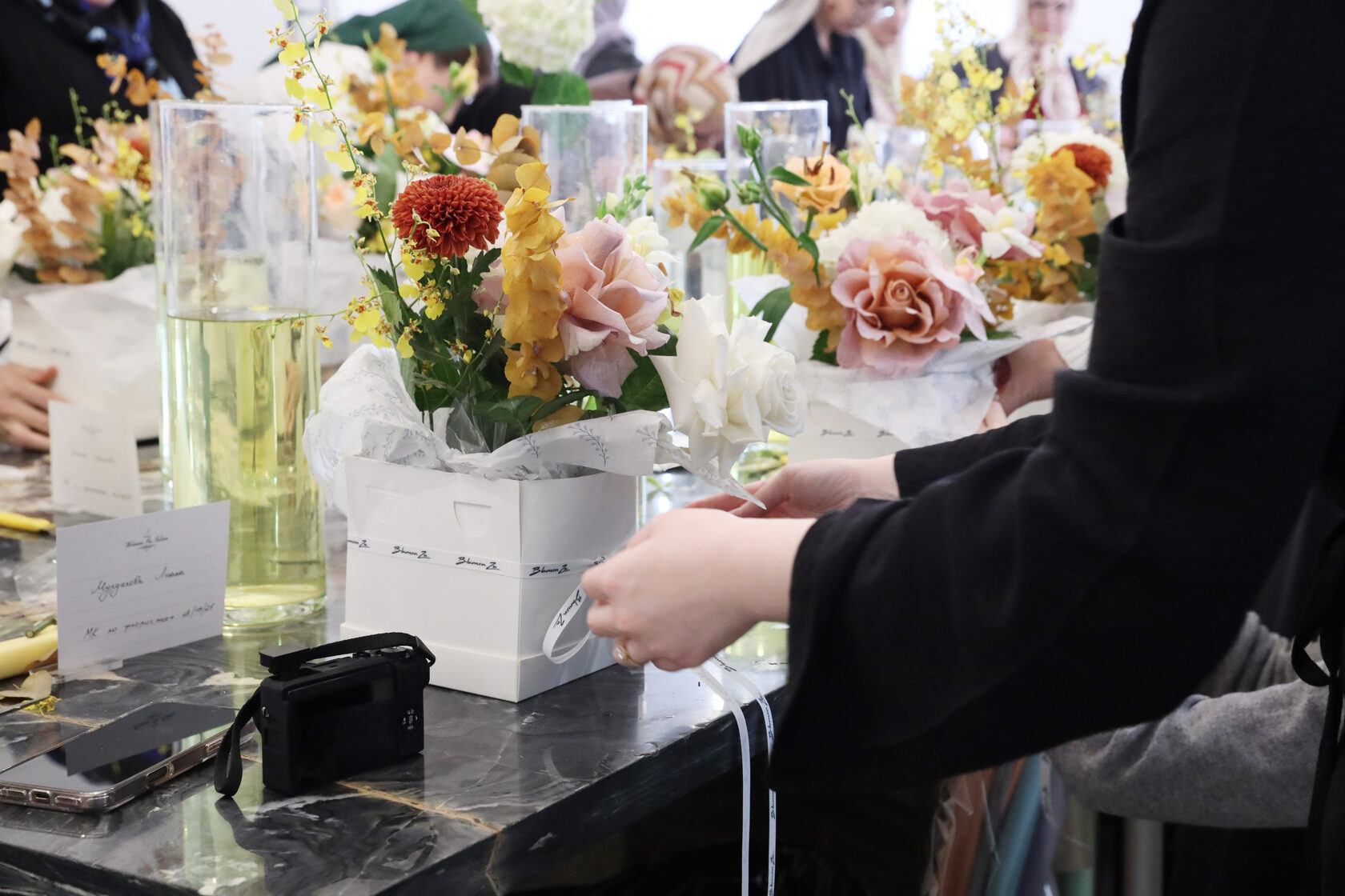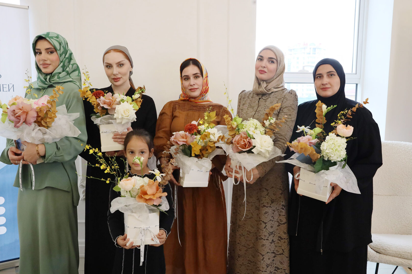 Далее под руководством опытных флористов участницы собрали осенние цветочные композиции, которые забрали с собой на память. Этот мастер-класс стал первым из целого цикла, организованного по инициативе руководителя Woman in Islam Хутмат Кадыровой.